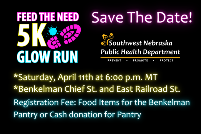 Southwest Nebraska Public Health Department continues to encourage residents to become more active and sustain a higher level of activity. Be sure to check with your medical provider prior to starting any new exercise program.